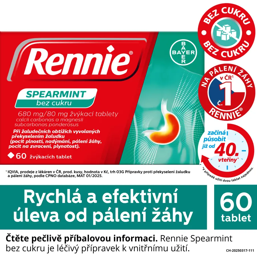Čtěte pečlivě příbalovou informaci. Rennie Spearmint bez cukru je léčivý přípravek k vnitřnímu užití.