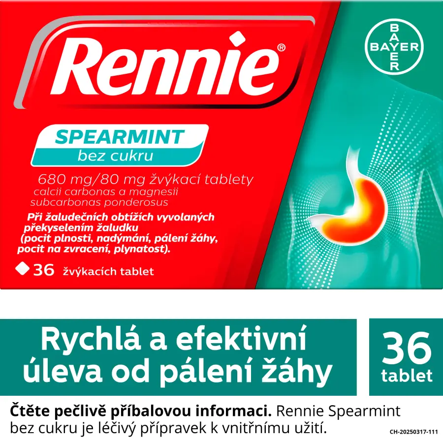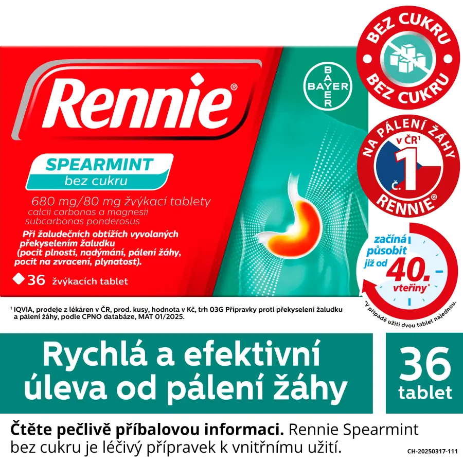 Čtěte pečlivě příbalovou informaci. Rennie Spearmint bez cukru je léčivý přípravek k vnitřnímu užití.