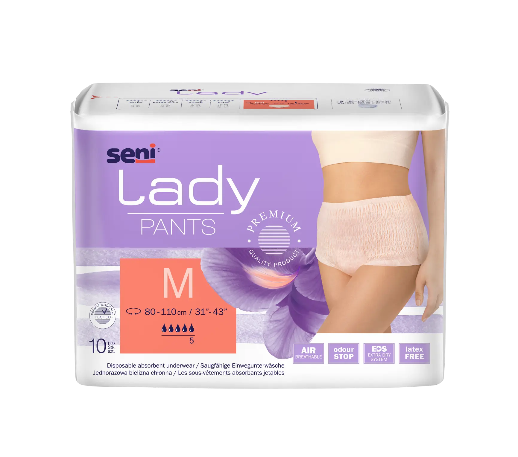 Seni Lady Pants inkontinenční plenkové kalhotky jsou určeny pro ženy se středním stupněm inkontinence.