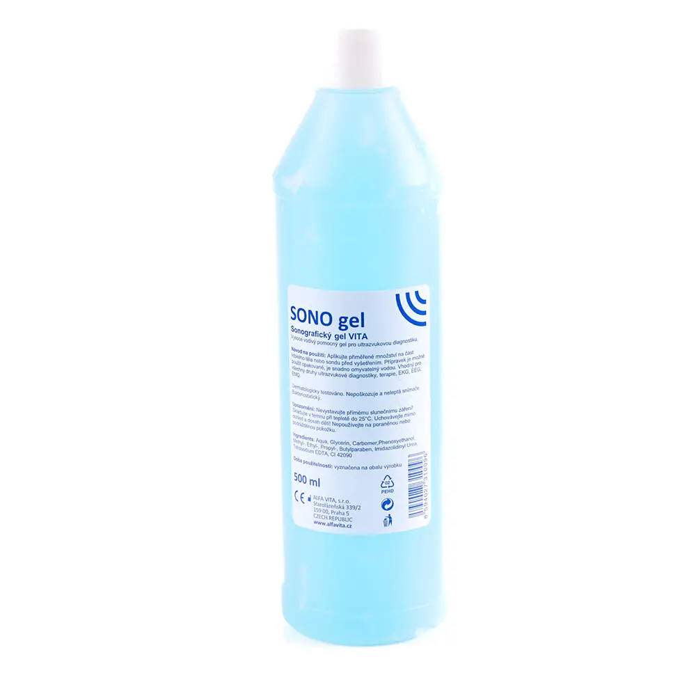 Sonografický gel VITA je vysoce vodivý indiferentní gel pro ultrazvukovou diagnostiku. Aplikuje se na části lidského těla nebo na sondy před sonografickým vyšetřením. Pro lepší viditelnost při aplikaci má světle tyrkysové zabarvení. Přípravek je snadno omyvatelný vodou. Dermatologicky testován.
