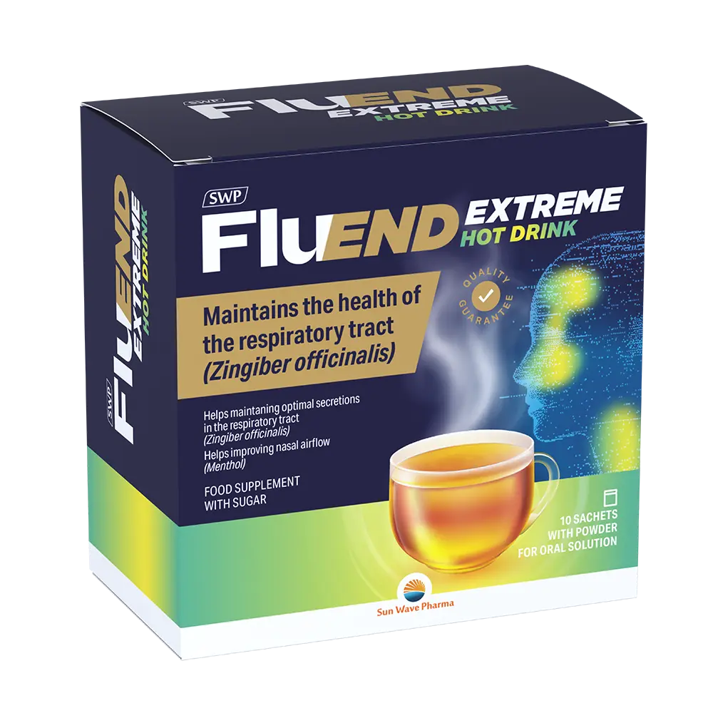 SWP Fluend Extreme je horký nápoj pro rychlou a komplexní úlevu při nachlazení, vhodné pro dospělé a děti od 6 let. Síla přírody v jedinečném složení, které cíleně působí proti více příznakům najednou s účinností potvrzenou observačními studiemi. Obsahuje vitamin C, mentol a rostlinné extrakty. Zázvor lékařský přispívá k normální funkci dýchacích cest a podporuje přirozenou obranyschopnost organismu.Vitamin C přispívá k normální funkci imunitního systému.