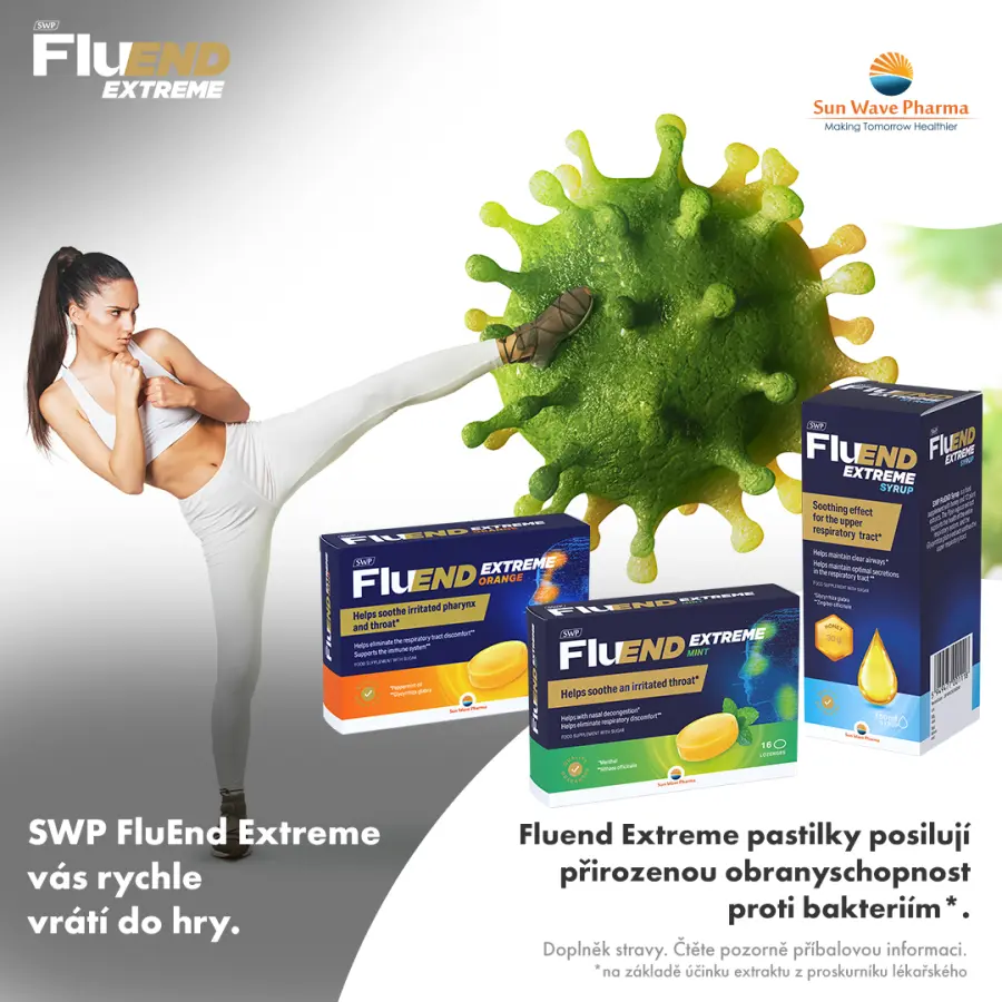 SWP Fluend Extreme Orange jsou pastilky pro rychlou a komplexní úlevu při nachlazení, vhodné pro dospělé a děti od 6 let. Síla přírody v jedinečném složení, které cíleně působí proti více příznakům najednou s účinností potvrzenou observačními studiemi. Máta peprná pomáhá zklidnit podráždění hltanu a krku. Lékořice lysá přispívá k normální funkci horních cest dýchacích.