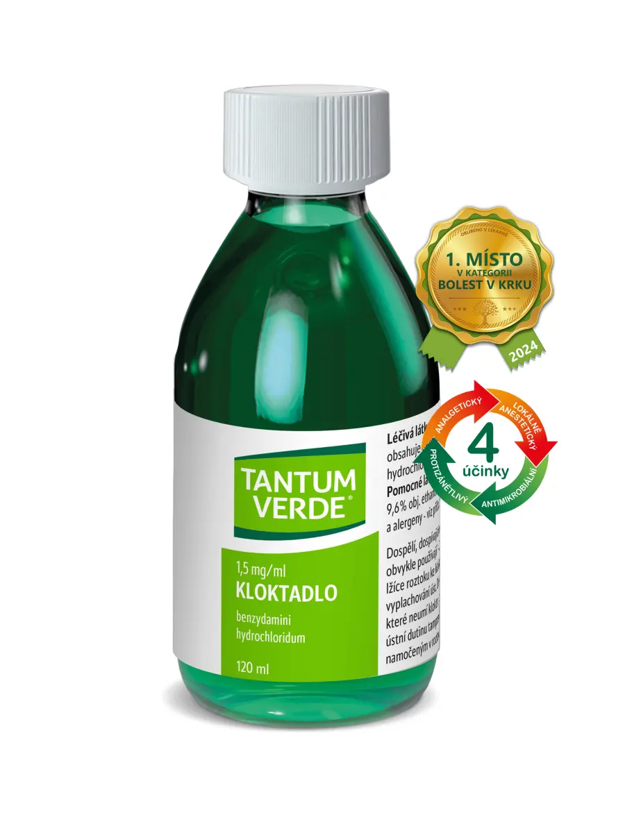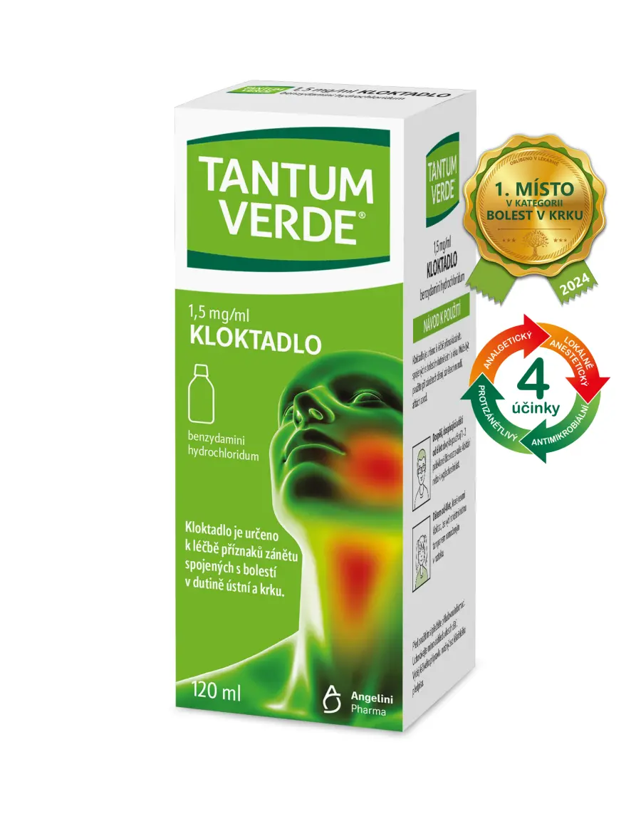 Lék na bolest i záněty v krku a ústech. Léčivá látka v Tantum Verde potlačuje zánět, který se projevuje bolestí, zarudnutím, otokem a ztepláním postiženého místa.