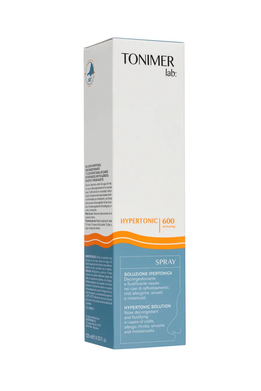 TONIMER lab hypertonický sprej 600 mOsm/kg je sterilní hypertonický roztok mořské vody ve spreji.