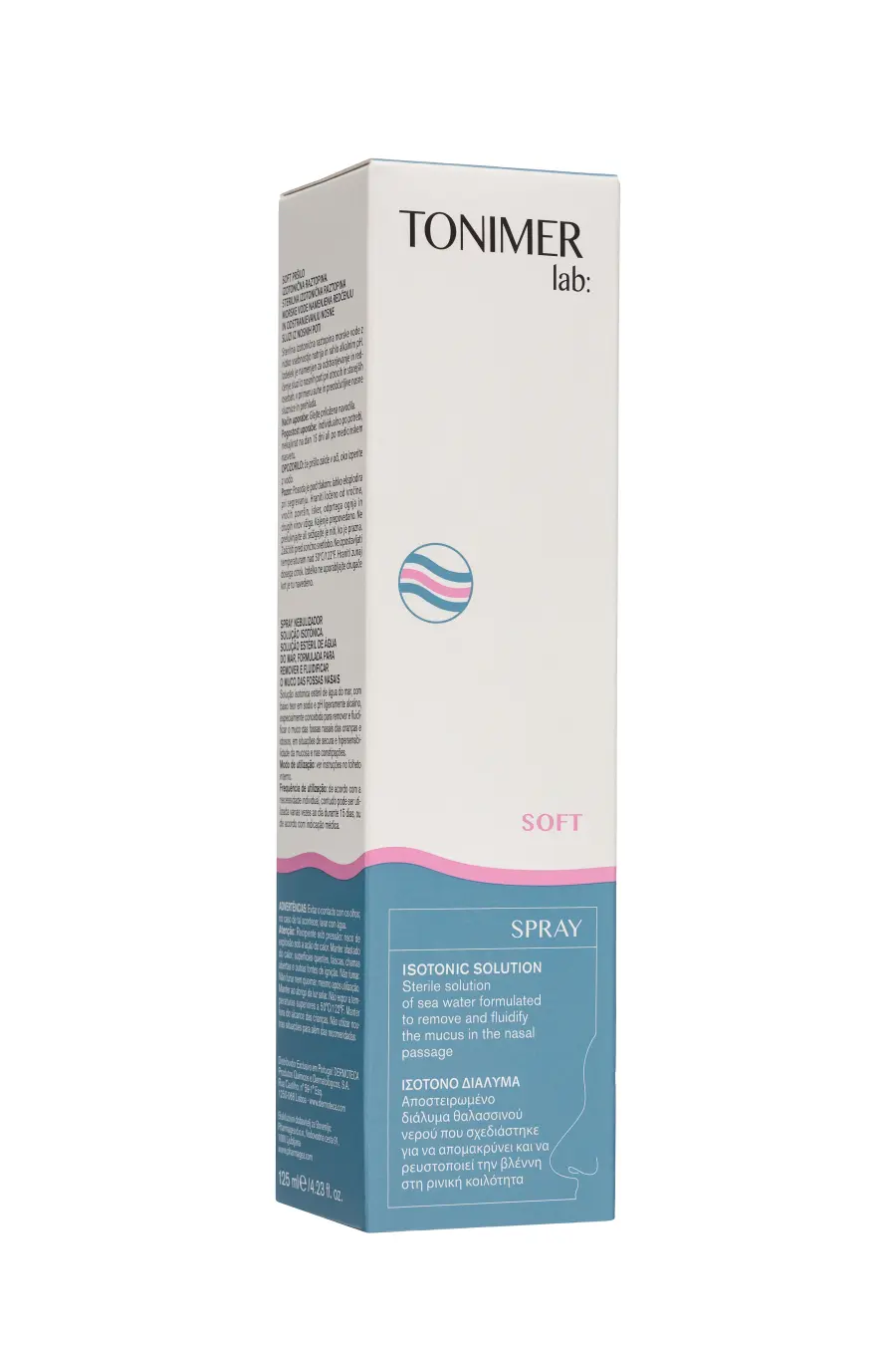 TONIMER lab Soft sprej je sterilní izotonický roztok mořské vody s nízkým obsahem sodíku a mírně zásaditým pH, vhodný zejména k odstranění a zkapalnění hlenu v nosních dutinách dětí a dospělých při suchosti a přecitlivělosti sliznic, při rýmě a nachlazení.