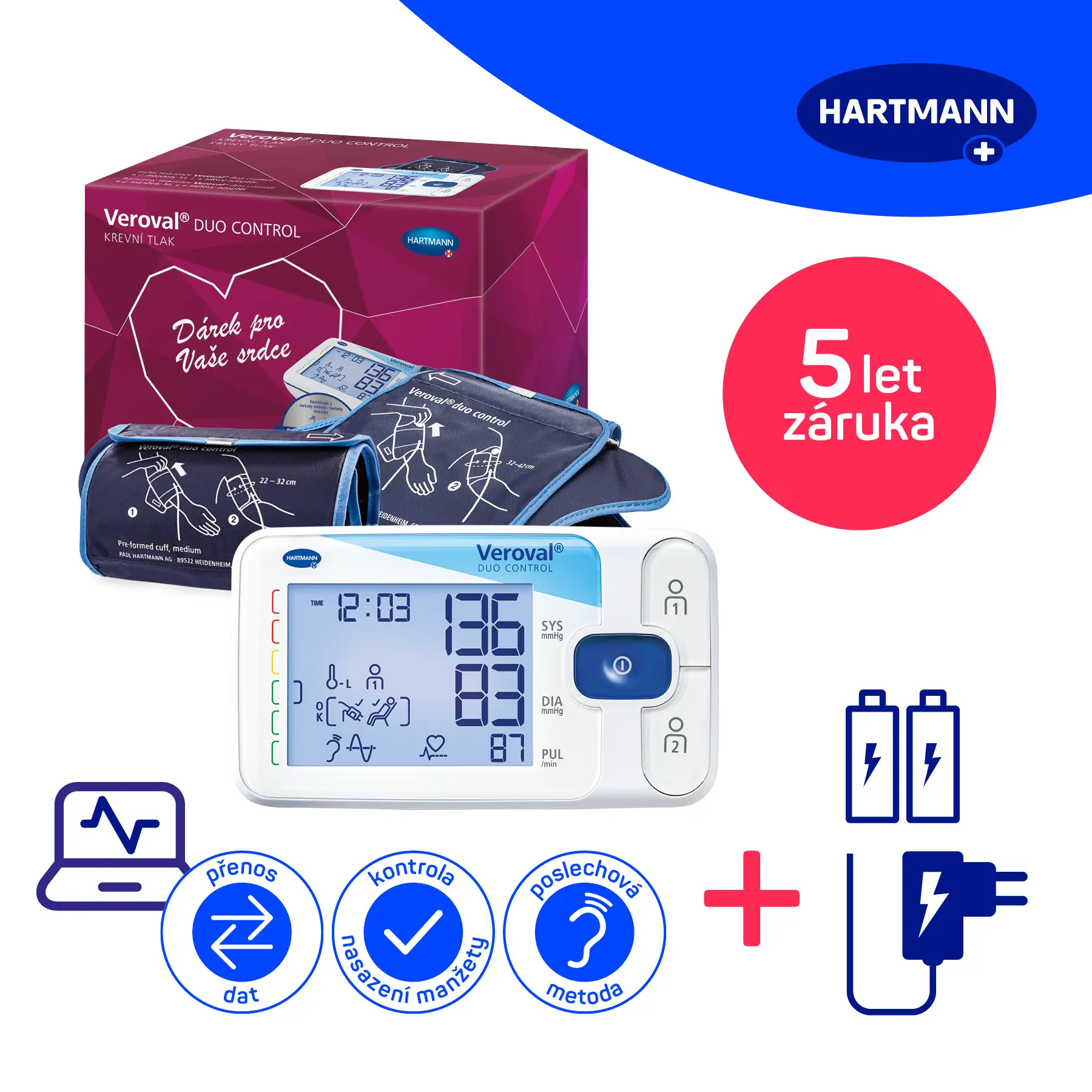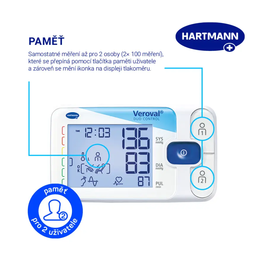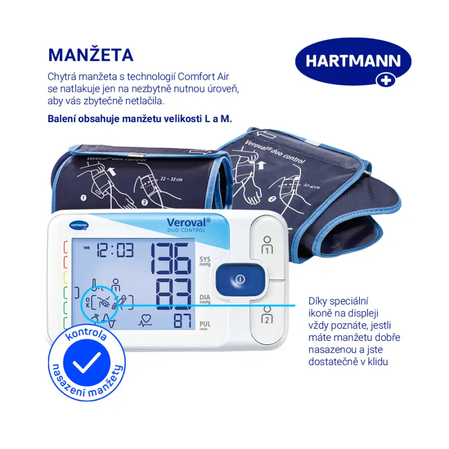 Hlavní výhody pažního tlakoměru HARTMANN Veroval duo control: