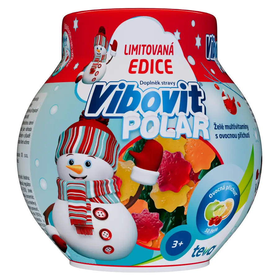 Vibovit POLAR jsou želé multivitaminy pro děti s ovocnou příchutí, obsahující komplex 9 vitaminů a minerálních látek, které podporují normální fungování imunitního systému.