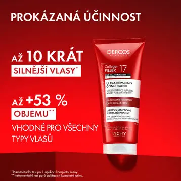 VICHY DERCOS COLLAGEN 17 FILLER ultra-regenerační kondicionér je inovativní vlasová péče vyvinutá pro posílení vlasů oslabených úbytkem kolagenu.