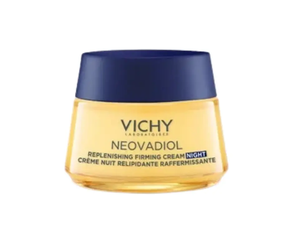 Vichy Neovadiol Magistral noční krém je vhodný pro pleť v období postmenopauzy. Období po menopauze je doprovázeno hormonálními změnami, jednou z nich je stárnutí pleti a ztráta lipidů, kdy pleť ztrácí pevnost a vrásky jsou výraznější. Krém obnovuje lipidy v kůži a vrásky jsou méně viditelné, pleť je vyhlazenější a pevnější. Vichy Neovadiol Postmenopauza noční krém obsahuje Termální vodu Vichy, Proxylan, výtažek z kasie a omega 3-6-9 mastné kyseliny z rostlinných olejů. Krém je nekomedogenní a je cítit lehce po květinách.
