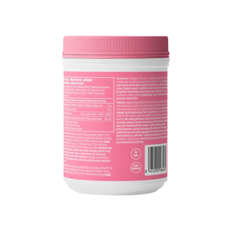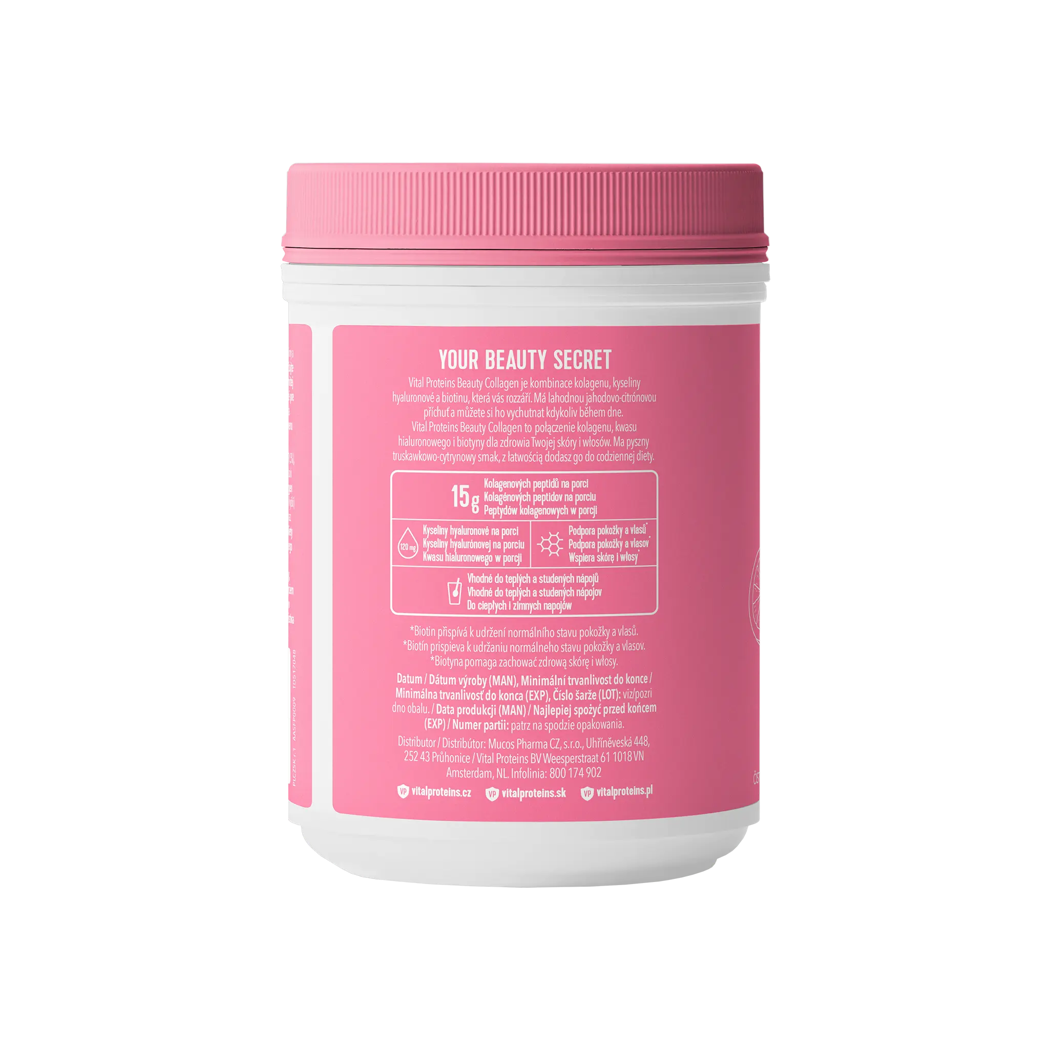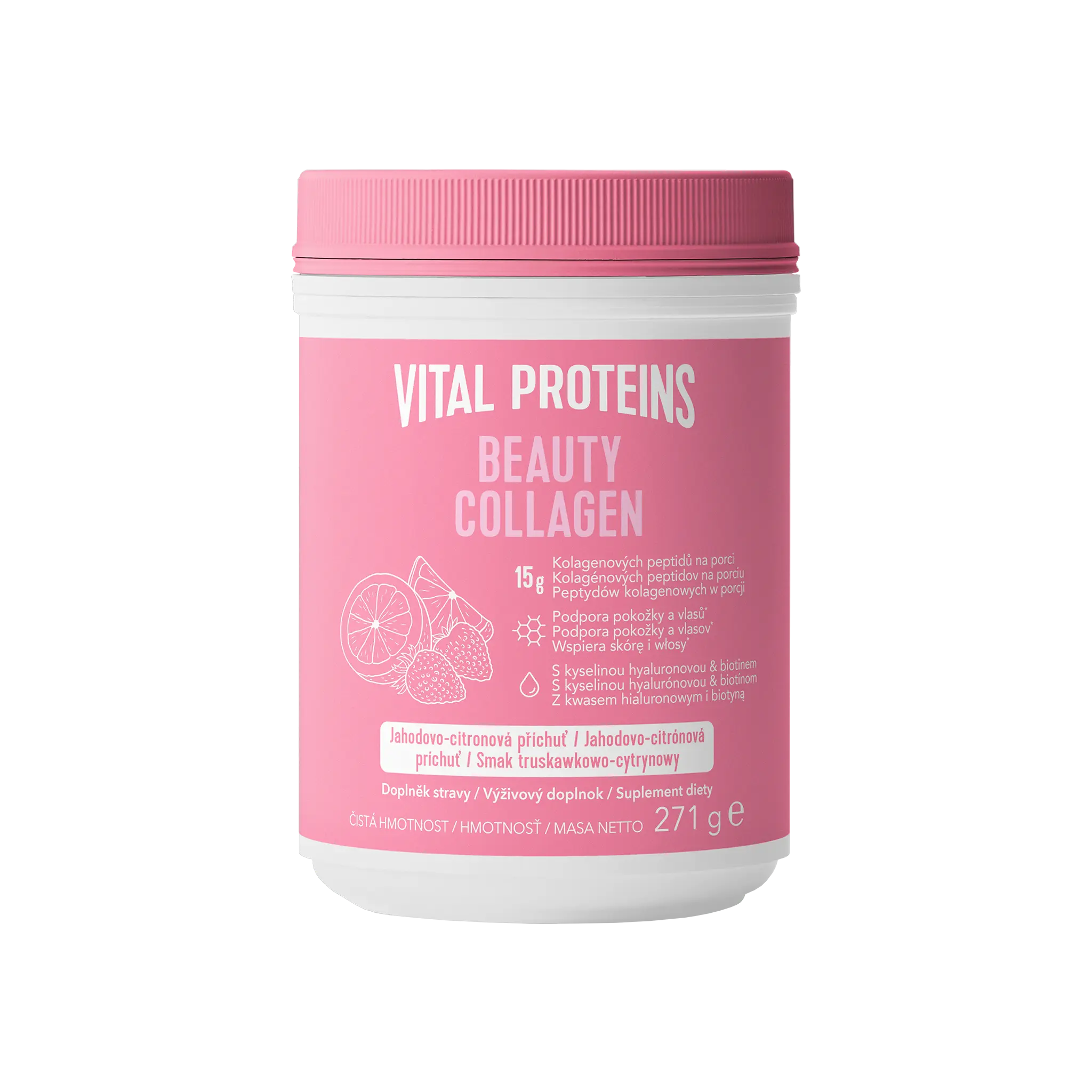 Beauty Collagen jahoda-citron je doplněk stravy, který obsahuje kombinace kolagenových peptidů, kyseliny hyaluronové a biotinu, která vás rozzáří.Má lahodnou jahodovo-citrónovou příchuť a můžete si ho vychutnat kdykoliv během dne. Díky osvěžující chuti jahody a citronu si můžete dopřát lahodný nápoj, který nejen chutná skvěle, ale také prospívá vaší kráse. Vital Proteins Beauty Collagen je navíc bez umělých barviv a konzervantů, což z něj činí čistou volbu pro váš každodenní rituál krásy. Vital Proteins Beauty Collagen je ideální volbou pro každého, kdo touží po zářivé pleti a celkovém zlepšení kvality vlasů, nehtů a pokožky.