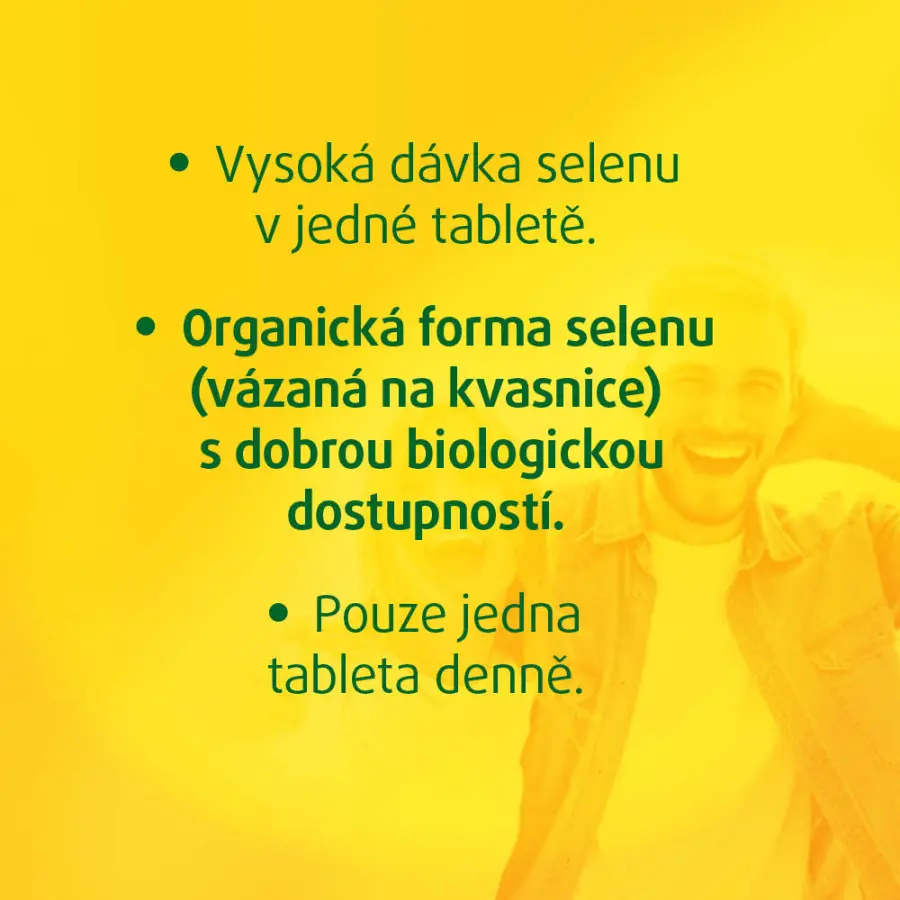 Vysoký obsah selenu prémiové kvality. Organická forma selenu s dobrou vstřebatelností. Selen přispívá k normální funkci imunitního systému a udržení normálního stavu vlasů a nehtů.